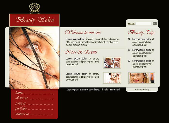Beautiful hair style website template psd, htm