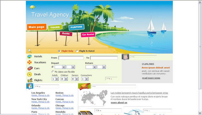 Global travel agents Affairs Web site layout