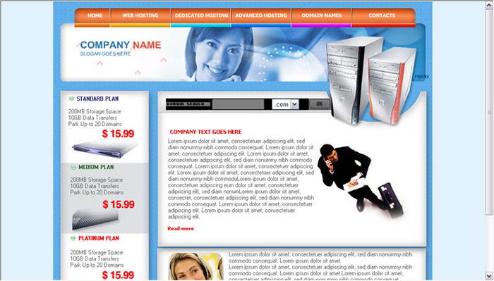 Server, hosting, web space template