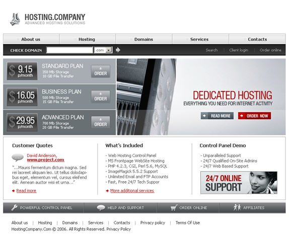 Virtual Host rental company's Web site interface