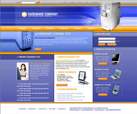 Computer hardware, electronics Web site templates